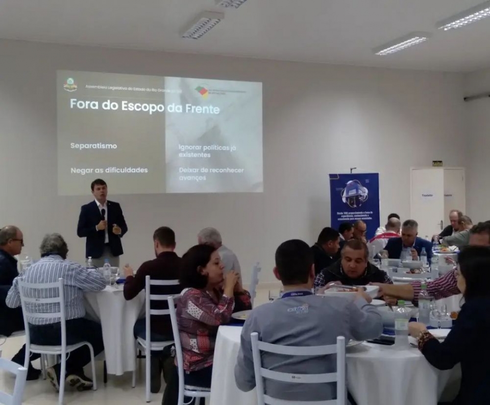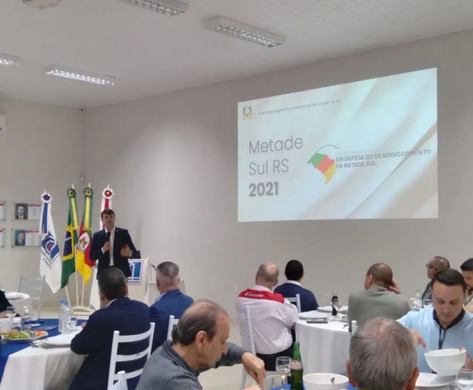 Na ocasião, esteve palestrando o Deputado Estadual Marcus Vinícius, falando sobre o Desenvolvimento da Metade Sul e as oportunidades da Região.