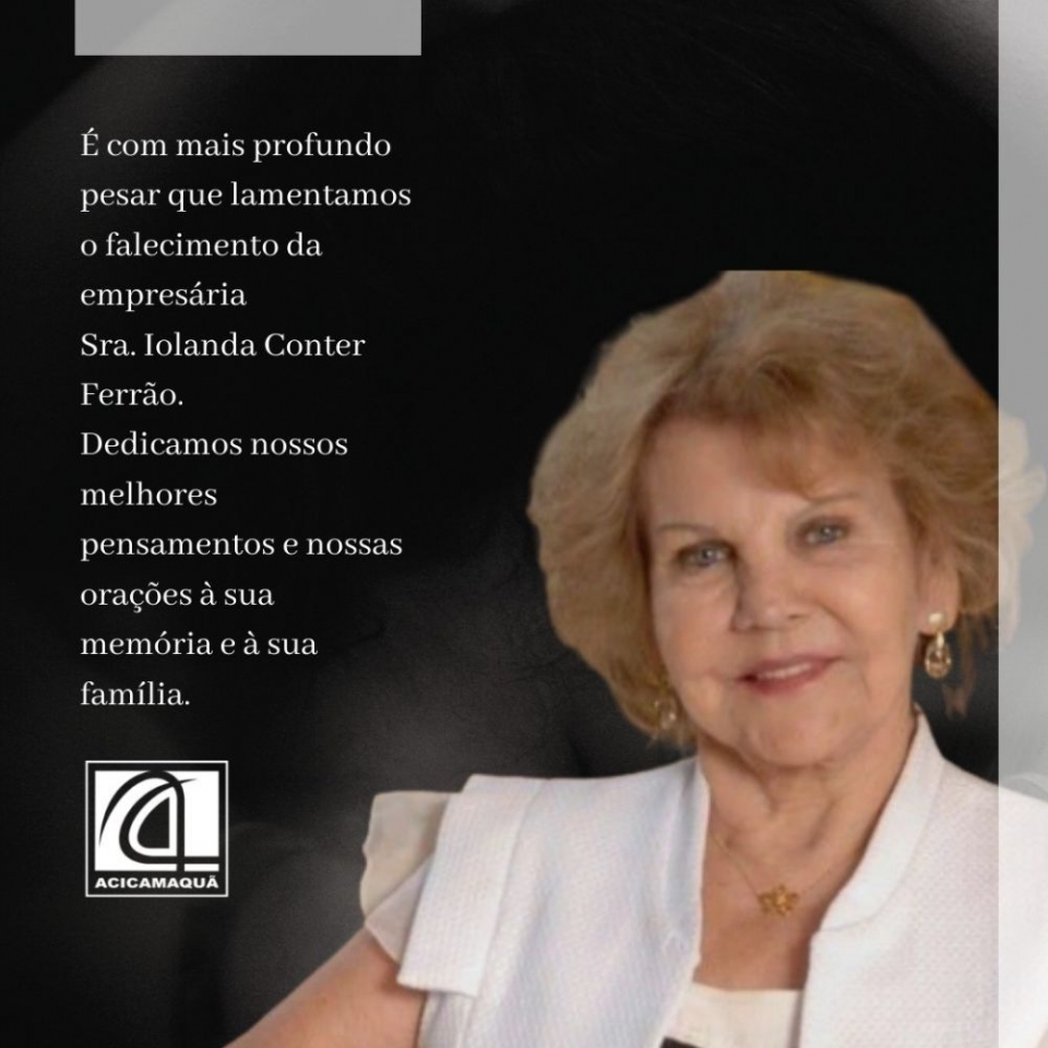 Nota de pesar pelo falecimento da empresária Iolanda Ferrão