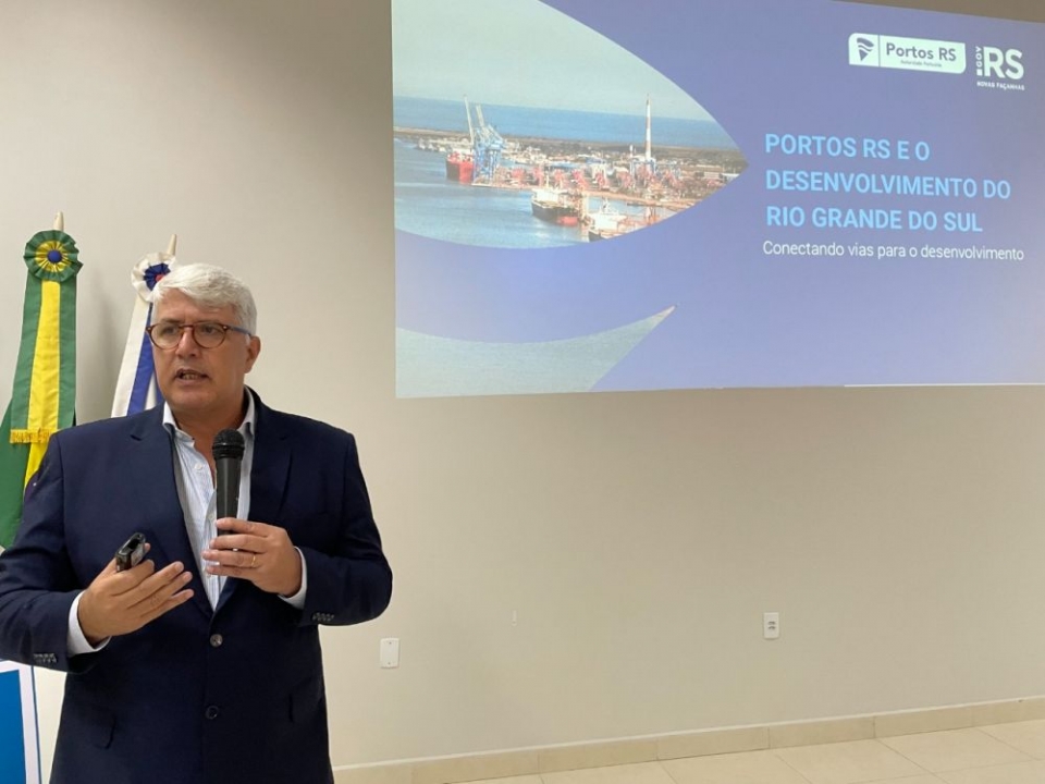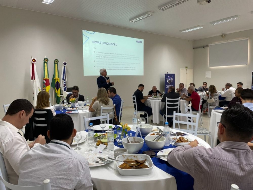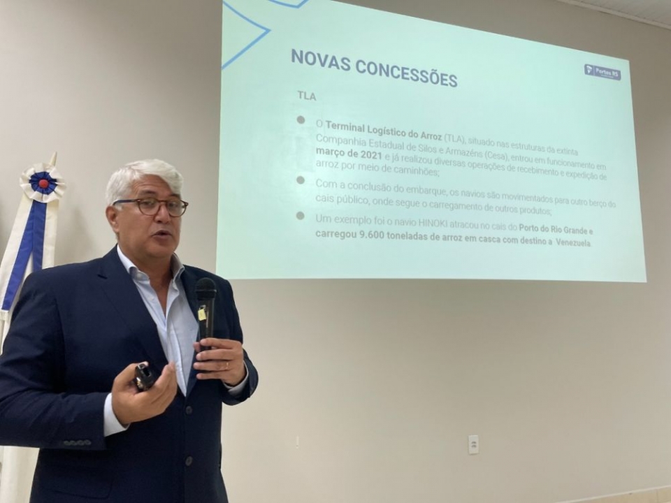 Em sua explanação, Estima falou sobre um tema de grande relevância - Portos do estado e o desenvolvimento do Rio Grande do Sul. O superintendente dos Portos do Rio Grande do Sul, abordou questões ligadas ao desenvolvimento, duplicação da BR 116 sul transporte e logística e a a situação hidroportuária do Estado do Rio Grande do Sul.