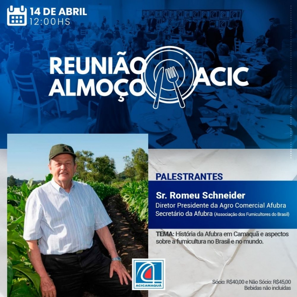Te aguardamos nesta quinta-feira, dia 14/04 as 12h na sede da ACIC.