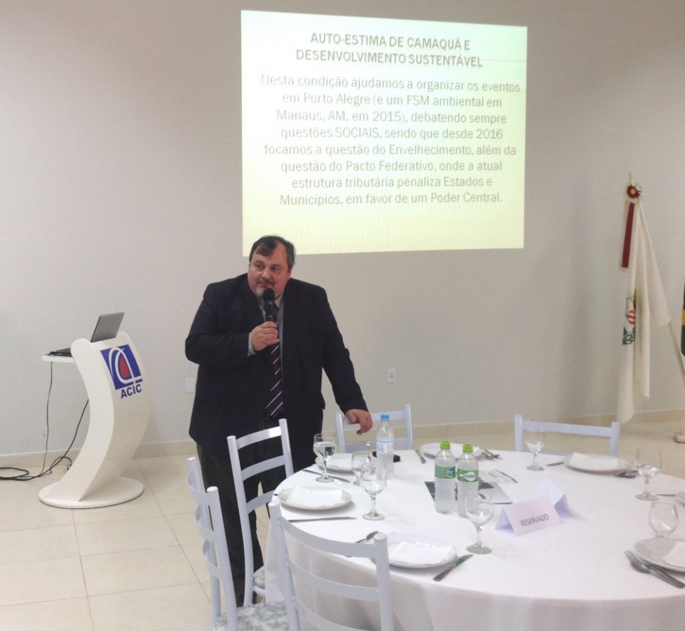 Com o tema "Autoestima de Camaquã e Desenvolvimento Sustentável, Ivan Feloniuk se apresentou na reunião almoço da ACI Camaquã nesta quinta (23).