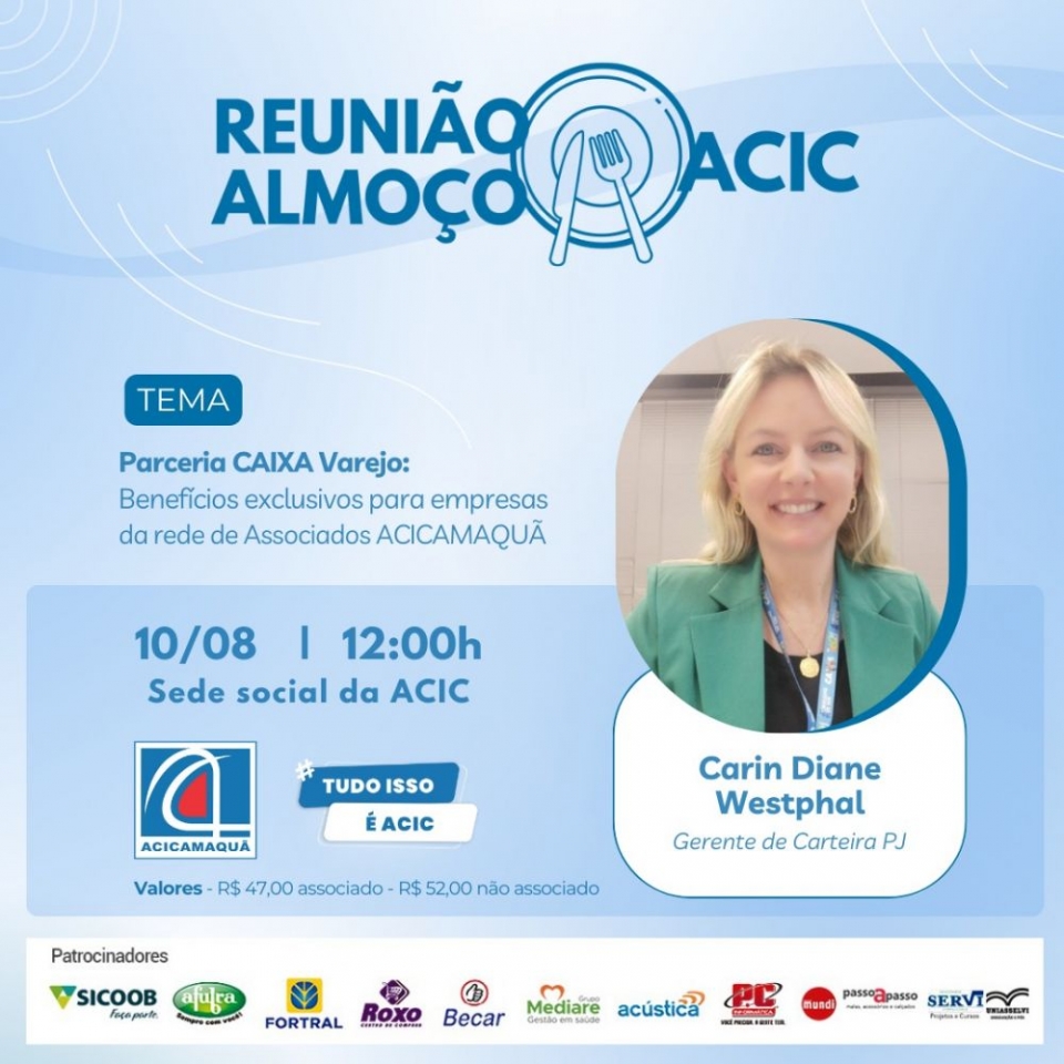 Reunião almoço ACIC, dia 10/08 (quinta-feira), às 12h