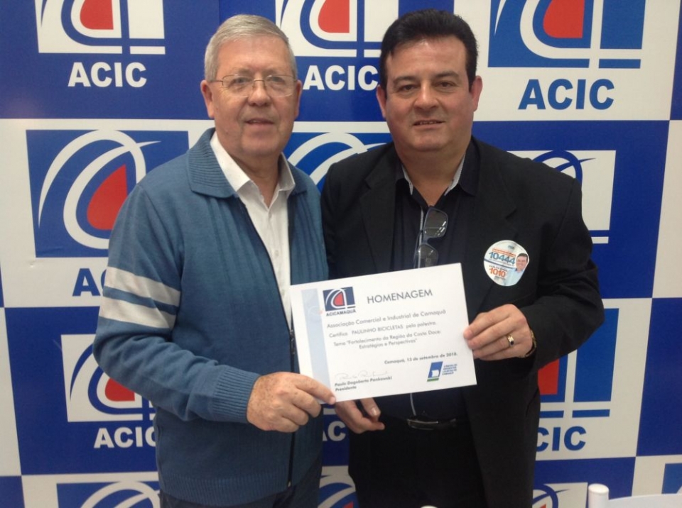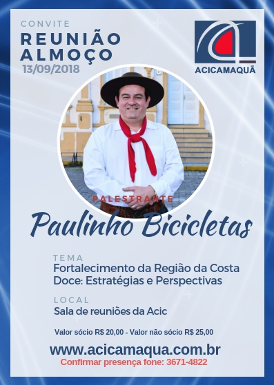 Com o tema "Fortalecimento da Região da Costa Doce: Estratégias e Perspectivas" o candidato a deputado estadual, Paulinho Bicicletas, palestrou na ACIC no dia de hoje.