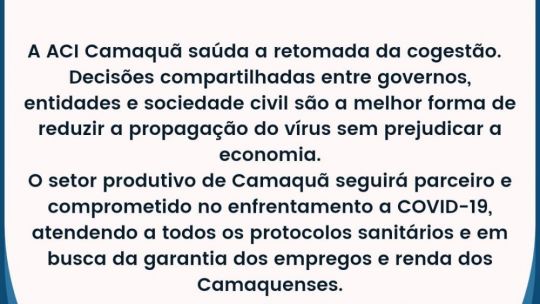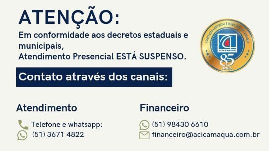Sistema de Cogestão O Varejo não pode parar! A ACIC comemora o retorno da Cogestão ACIC INFORMA Ajude o Hospital Nossa Senhora Aparecida Live em Comemoração ao Dia da Mulher - Empreendedorismo Feminino. A mulher a frente do Grupo Lins Ferrão Decreto Municipal de Camaquã N° 24168 Dicas de como vender mais pelo Whatsapp LIVE Dia Internacional da Mulher 2021 BANDEIRA PRETA NO RIO GRANDE DO SUL « anteriorpróximo »373839404142434445 Categorias DicasEconomia Galeria de FotosGaleria de VídeosNotícias NovidadesTodas Últimas Notícias NOTA OFICIAL – ACIC CAMAQUÃ 10 de Dezembro de 2025 Conheça as Empresas agraciadas com o Prêmio Destaque Empresarial ACIC 2025 08 de Dezembro de 2025 ACIC divulga as 33 empresas vencedoras do Prêmio Destaque Empresarial 2025 e celebra 90 anos de atuação 02 de Dezembro de 2025 Ênio Waskow Nunes é eleito presidente da ACIC para o biênio 2026–2027 26 de Novembro de 2025 Camaquã Summit 2025 movimenta a região com dois dias de inovação, negócios e saúde 07 de Outubro de 2025 Faltam 30 dias para o Camaquã Summit 2025 24 de Setembro de 2025 ACIC promove mais uma edição da Reunião Almoço com foco em inteligência empresarial e fortalecimento do associativismo 30 de Agosto de 2025 Alunos do Colégio Contemporâneo são premiados como Melhor Miniempresa 2025 e avançam para fase nacional 15 de Agosto de 2025 Reunião-Almoço da ACIC reúne empresários para palestra com Wilson Victorio 15 de Agosto de 2025 ACIC e Junior Achievement celebram formatura da primeira turma do Programa Miniempresa em Camaquã 08 de Agosto de 2025
