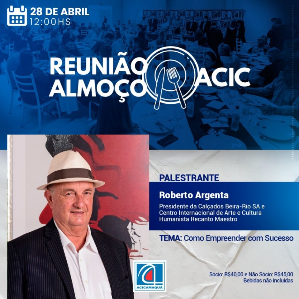 História Calçados Beira Rio e como empreender com sucesso serão os temas da Reunião almoço ACIC desta semana, dia 28/04/2022